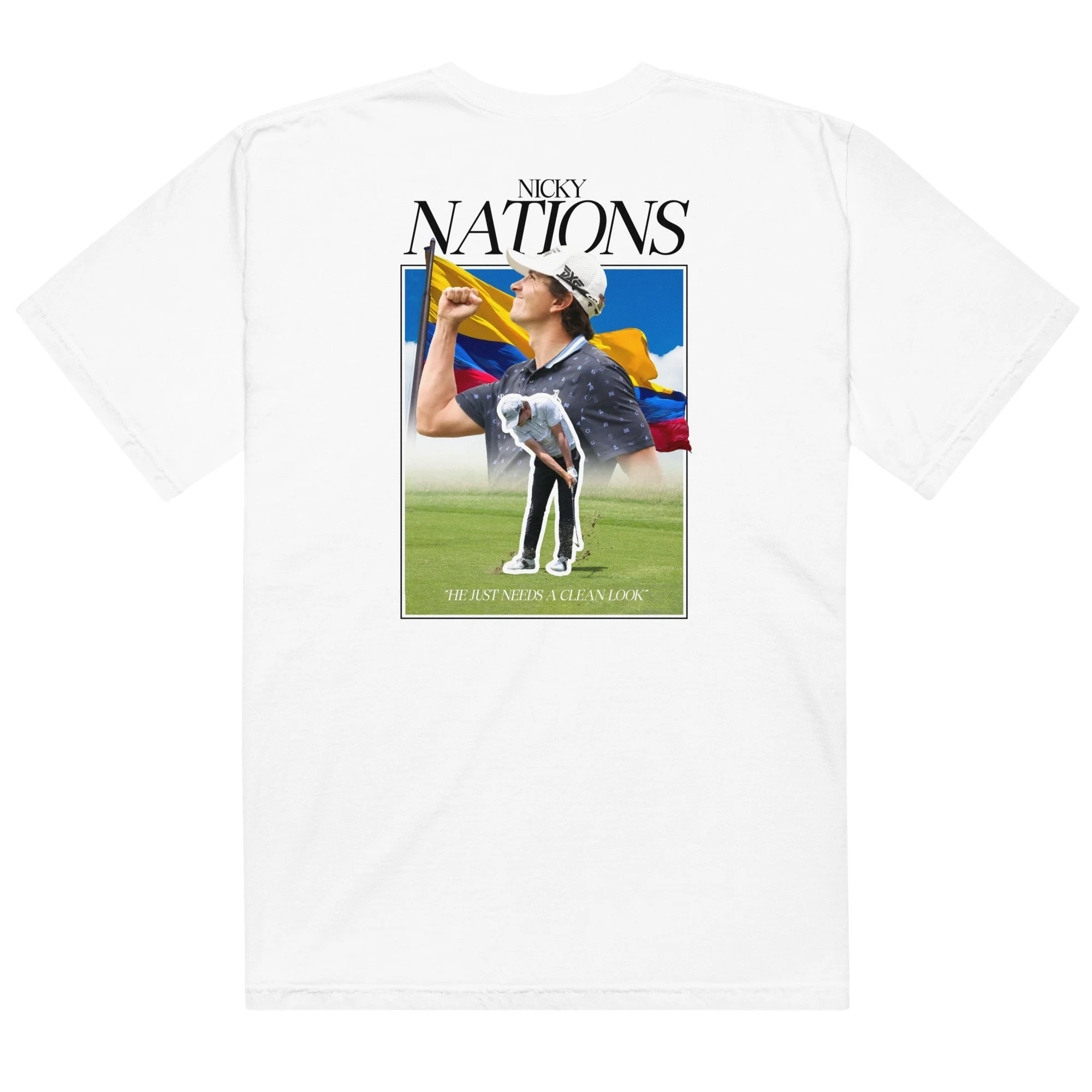 Image 1 of 6 Image 2 of 6 Image 3 of 6 Image 4 of 6 Image 5 of 6 Image 6 of 6 Nations Tee $40.00 All he needs is a clean look, and all you need is a clean T-shirt of Nicky from the short grass. • 100% ring-spun cotton • Fabric weight: 6.1 oz/yd² (206.8 g/m²) • Garment-dyed • Relaxed fit • 7/8″ double-needle topstitched collar • Twill-taped neck and shoulders for extra durability • Double-needle armhole, sleeve, and bottom hems • Blank product sourced from Honduras Size: S M L XL 2XL Add To Cart Added! All he needs is a clean look, and all you need is a clean T-shirt of Nicky from the short grass. • 100% ring-spun cotton • Fabric weight: 6.1 oz/yd² (206.8 g/m²) • Garment-dyed • Relaxed fit • 7/8″ double-needle topstitched collar • Twill-taped neck and shoulders for extra durability • Double-needle armhole, sleeve, and bottom hems • Blank product sourced from Honduras
